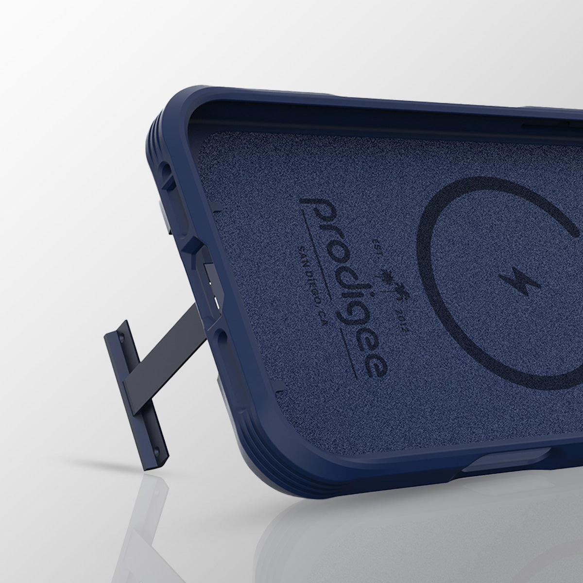 Designed with a discretely placed kickstand made of high-quality aluminum alloy that firmly holds your phone in an upright horizontal or vertical position!