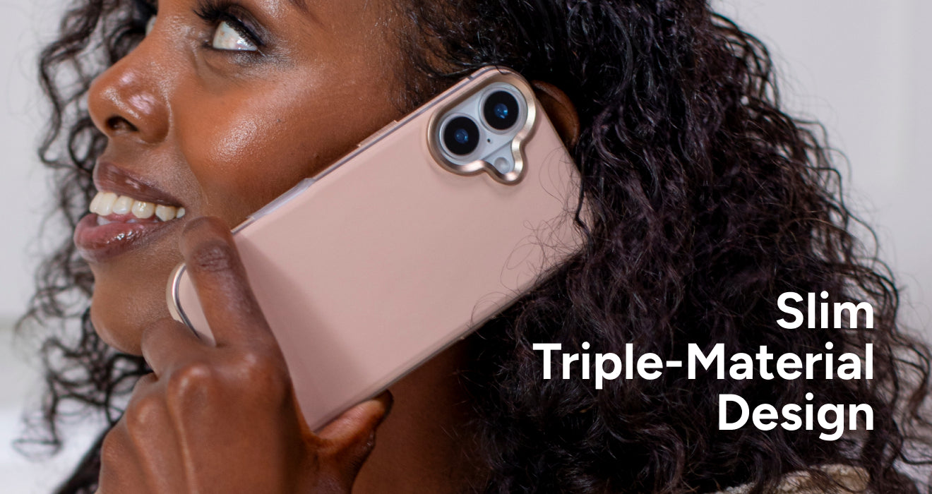 Soft touch back perfectly matched with metal framed bumper, bezel, and buttons.
