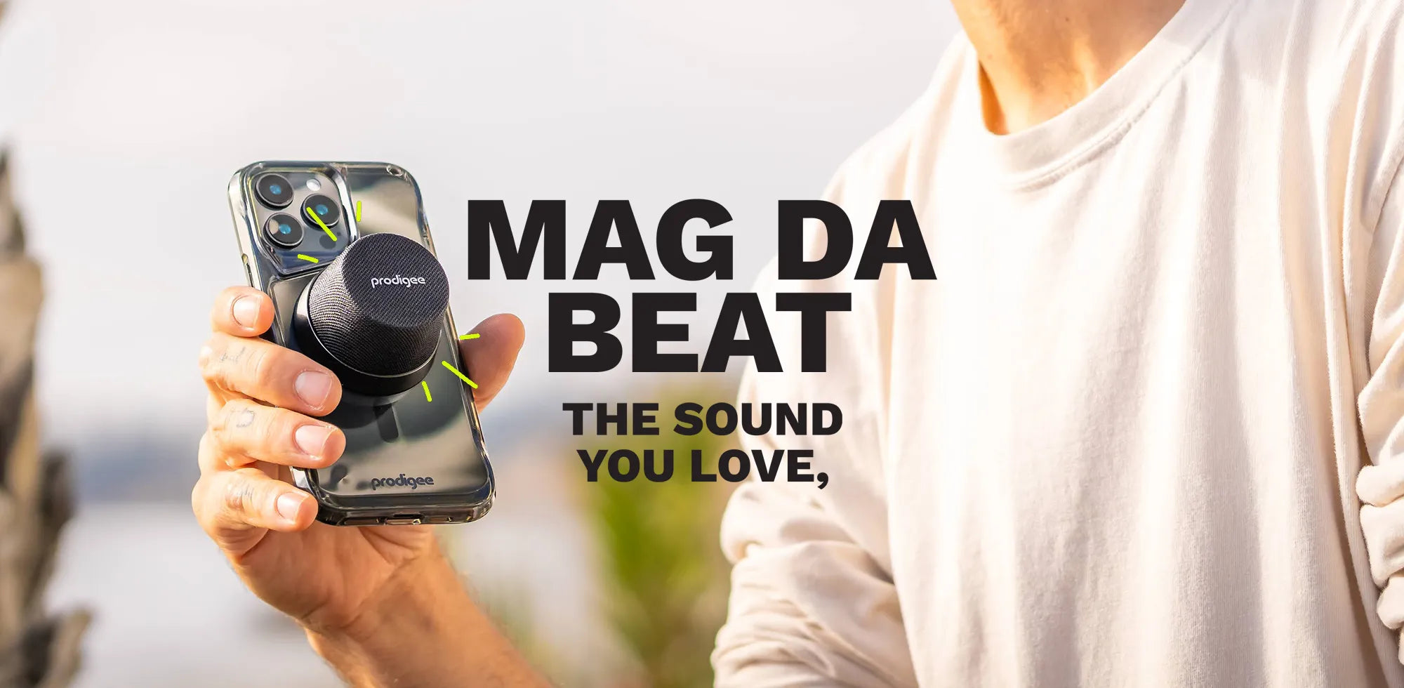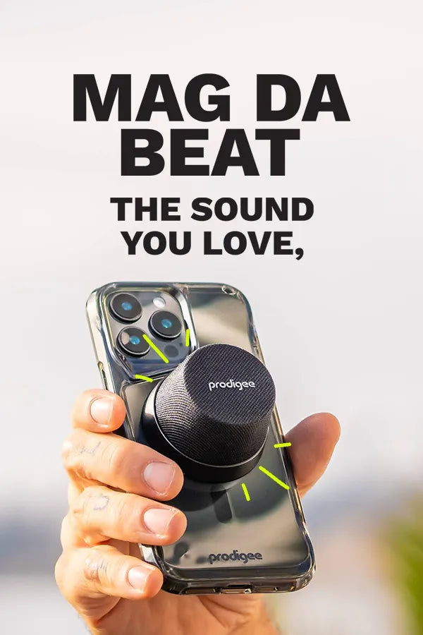 Turn up the energy with Mag Da Beat, the magnetic Bluetooth speaker that’s as powerful as it is versatile. Designed with seamless MagSafe alignment, this compact speaker snaps effortlessly to your phone, doubles as a handy stand, and even mounts to any surface with its built-in magnet or included metal ring.