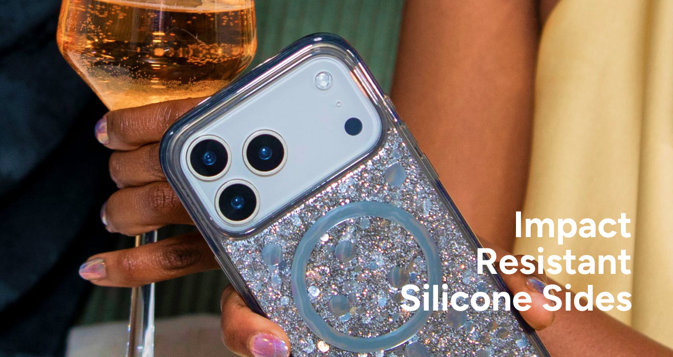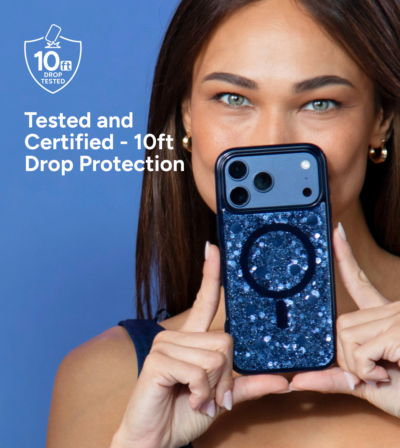 Max protection without adding unnecessary bulk. This case is ready to take on the toughest bumps and drops. With a pop of glitz ‘n sparkle to make you smile & shine!