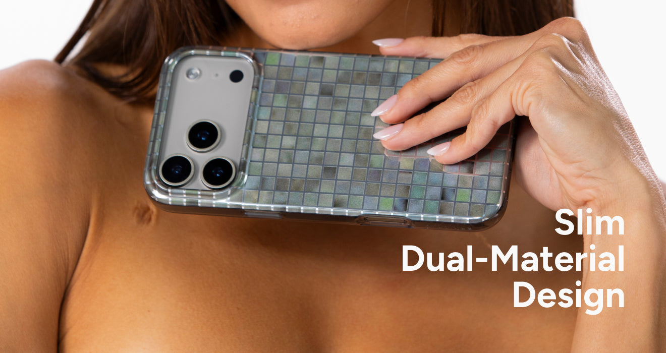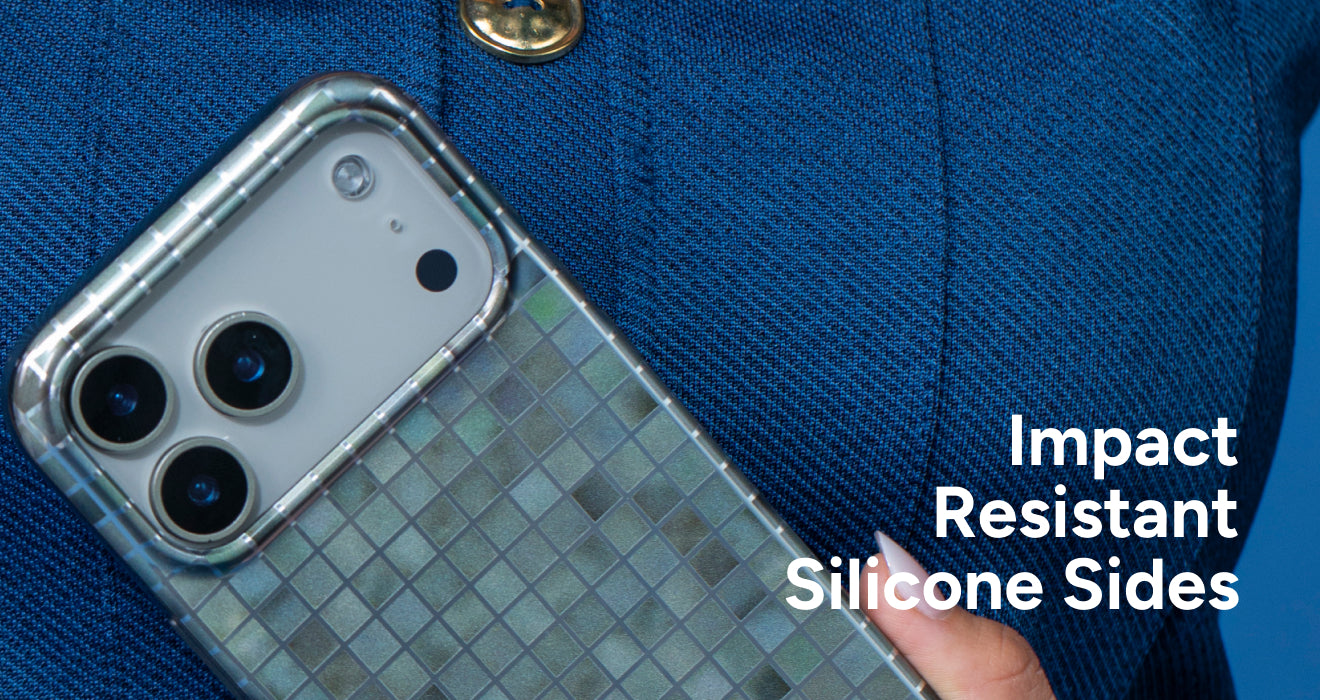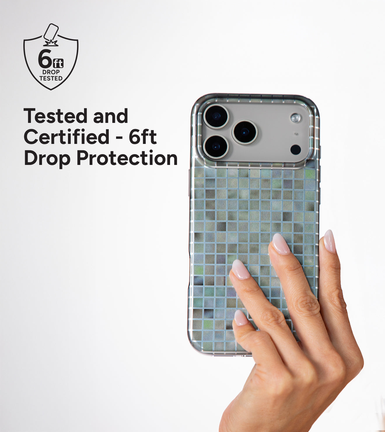 Inspired by Mosaic-like tiles and catches the light from every angle. This case blends fashion with function.