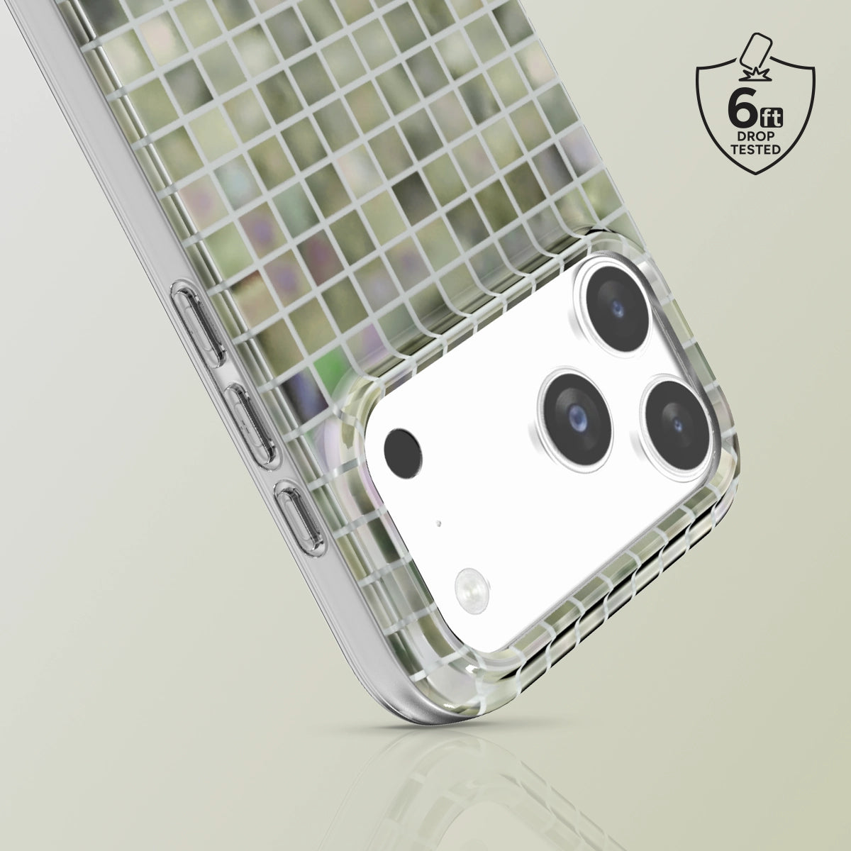 Inspired by Mosaic-like tiles and catches the light from every angle. This case blends fashion with function.